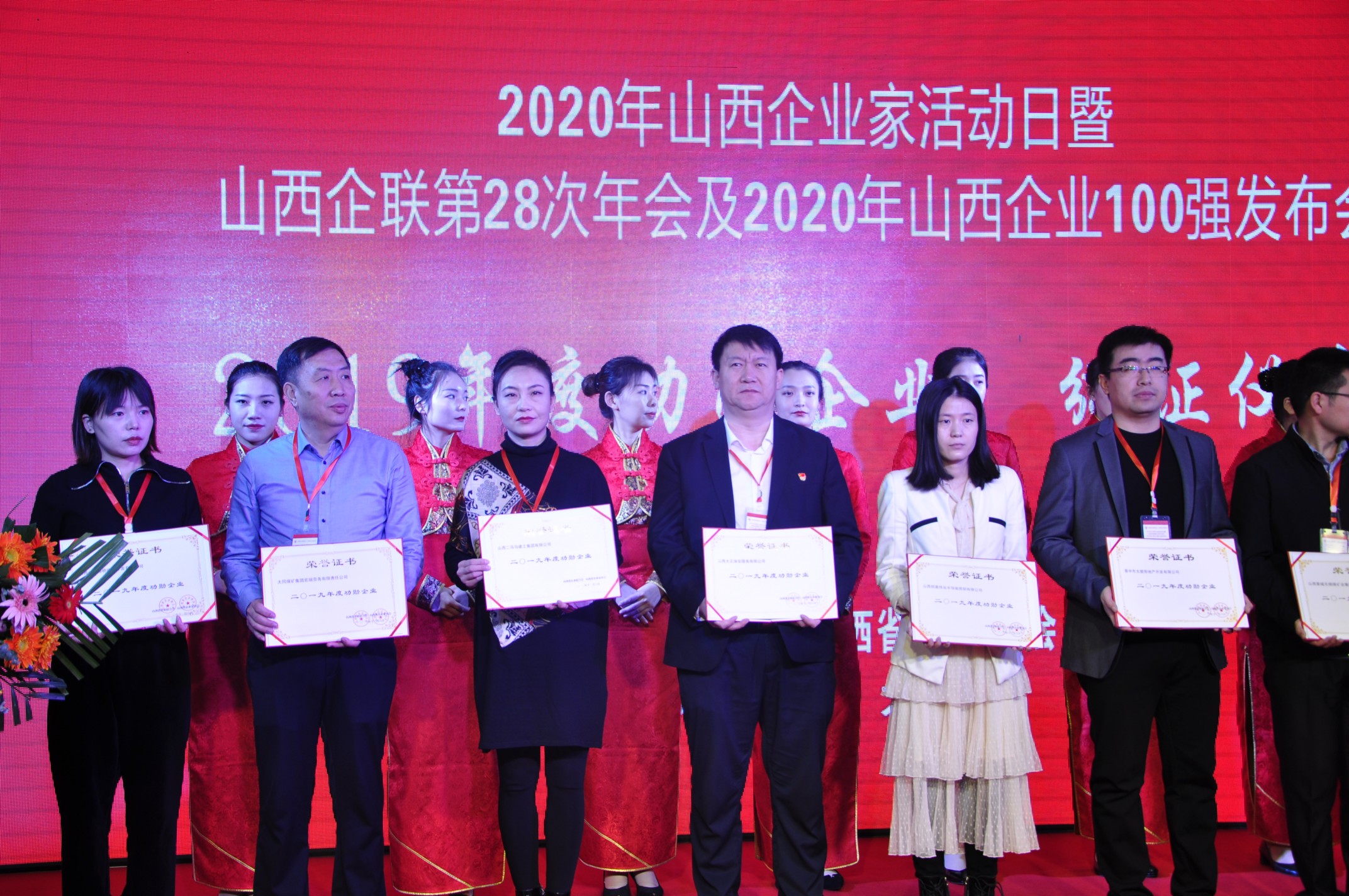 11月6日,以“勇于擔(dān)當(dāng)奉獻、彰顯企業(yè)家精神、促進變革中的大企業(yè)發(fā)展 ”為主題的2020年山西企業(yè)家活動日暨山西企聯(lián)第28次年會及2020年山西企業(yè)100強發(fā)布會在太原舉行。山西大正保安服務(wù)有限公司榮膺“2020山西服務(wù)業(yè)企業(yè)100強”、“2019年度功勛企業(yè)”兩項榮譽稱號;公司黨委書記、董事長張躍生榮獲“2019年度功勛企業(yè)家”。公司黨委副書記、總經(jīng)理趙培宏,黨委副書記、副總經(jīng)理陳志平前往參會。趙培宏作為獲獎企業(yè)代表上臺領(lǐng)取“2019年度功勛企業(yè)”獎項。
