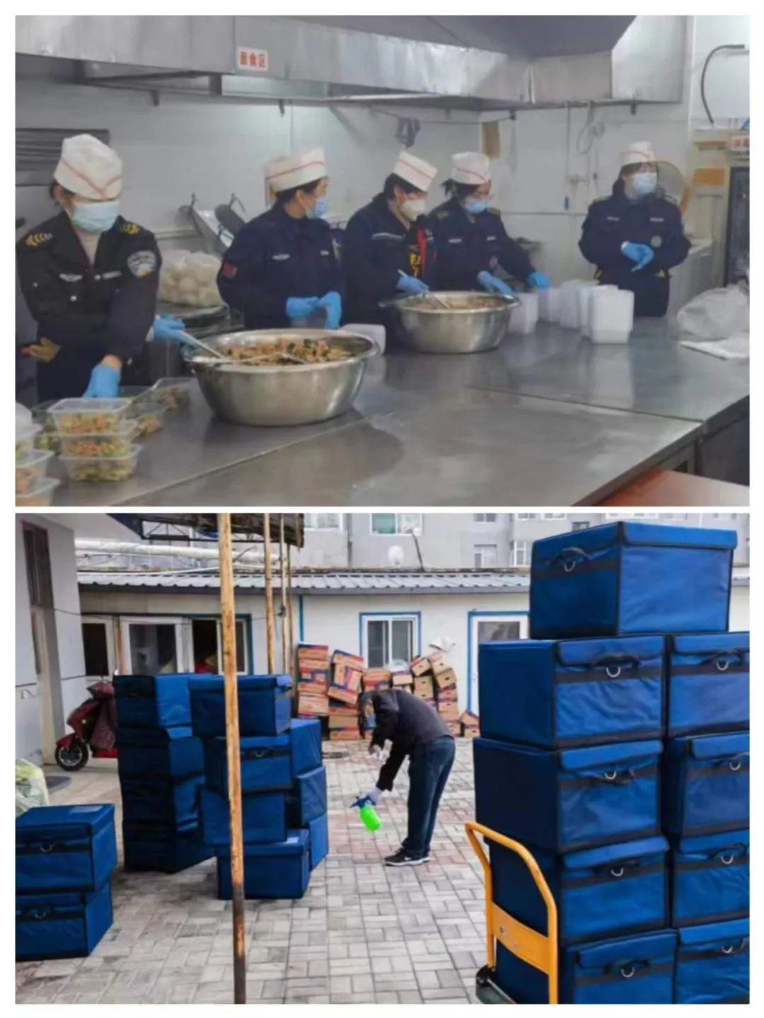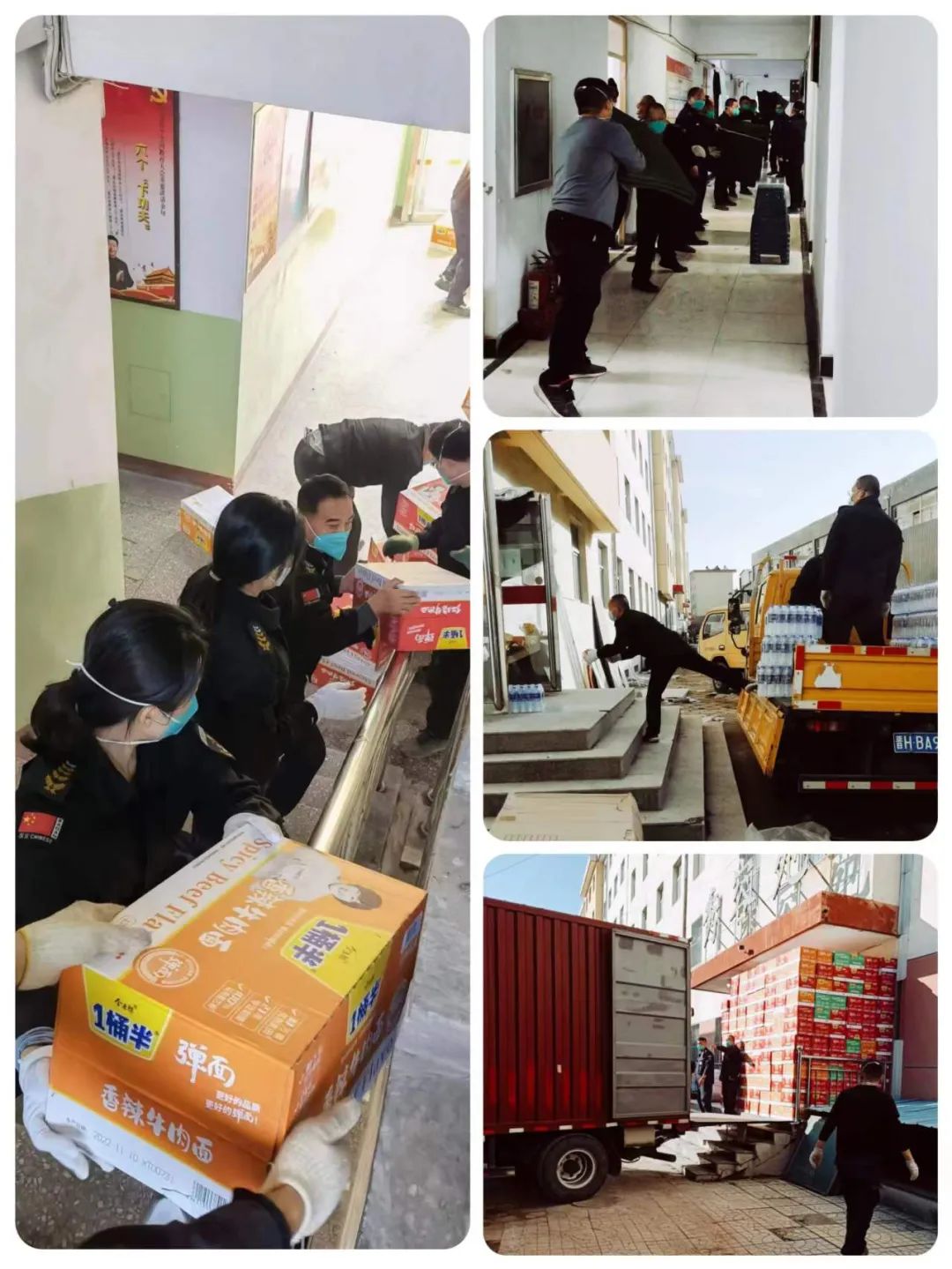 忻州師院東校區(qū)隔離點(diǎn)正式啟用后,寇星云、郭二平分別帶領(lǐng)以守押公司、億通公司人員為主組建的工作區(qū)、隔離區(qū)兩支黨員突擊分隊(duì)進(jìn)駐相應(yīng)區(qū)域,以機(jī)關(guān)和守押監(jiān)控中心、物業(yè)公司、刻章公司、億通公司、文化藝術(shù)公司等單位人員組建的其它三支黨員突擊分隊(duì)在外負(fù)責(zé)保障餐食、物資供應(yīng)。餐食物資保障分隊(duì)隊(duì)員既要克服重重困難采購(gòu)所需食材和生活物資、合理搭配菜譜,又要在保溫、包裝等方面想辦法、下功夫,盡量根據(jù)隔離人員不同口味做到差異化安排搭配,保證葷素搭配、營(yíng)養(yǎng)均衡,盡最大程度滿足隔離人員每日的營(yíng)養(yǎng)需求。預(yù)備應(yīng)急分隊(duì)隊(duì)員往往身兼數(shù)職,哪里需要到哪里,一會(huì)幫忙搬運(yùn)物資,一會(huì)幫忙分裝水果、面包、餅干等輔食,忙的馬不停蹄。餐食物資運(yùn)輸隊(duì)員根據(jù)實(shí)際,科學(xué)合理調(diào)配車(chē)輛和路線,保證將餐食、生活物資按時(shí)送達(dá)。在隔離點(diǎn)一線的工作區(qū)、隔離區(qū)隊(duì)員,在做好餐食、物資配送的基礎(chǔ)上,積極協(xié)調(diào)解決隔離人員的合理訴求,讓隔離點(diǎn)如家般溫暖常在,做到了隔離人員、工作人員、隔離點(diǎn)領(lǐng)導(dǎo)組“三滿意”。