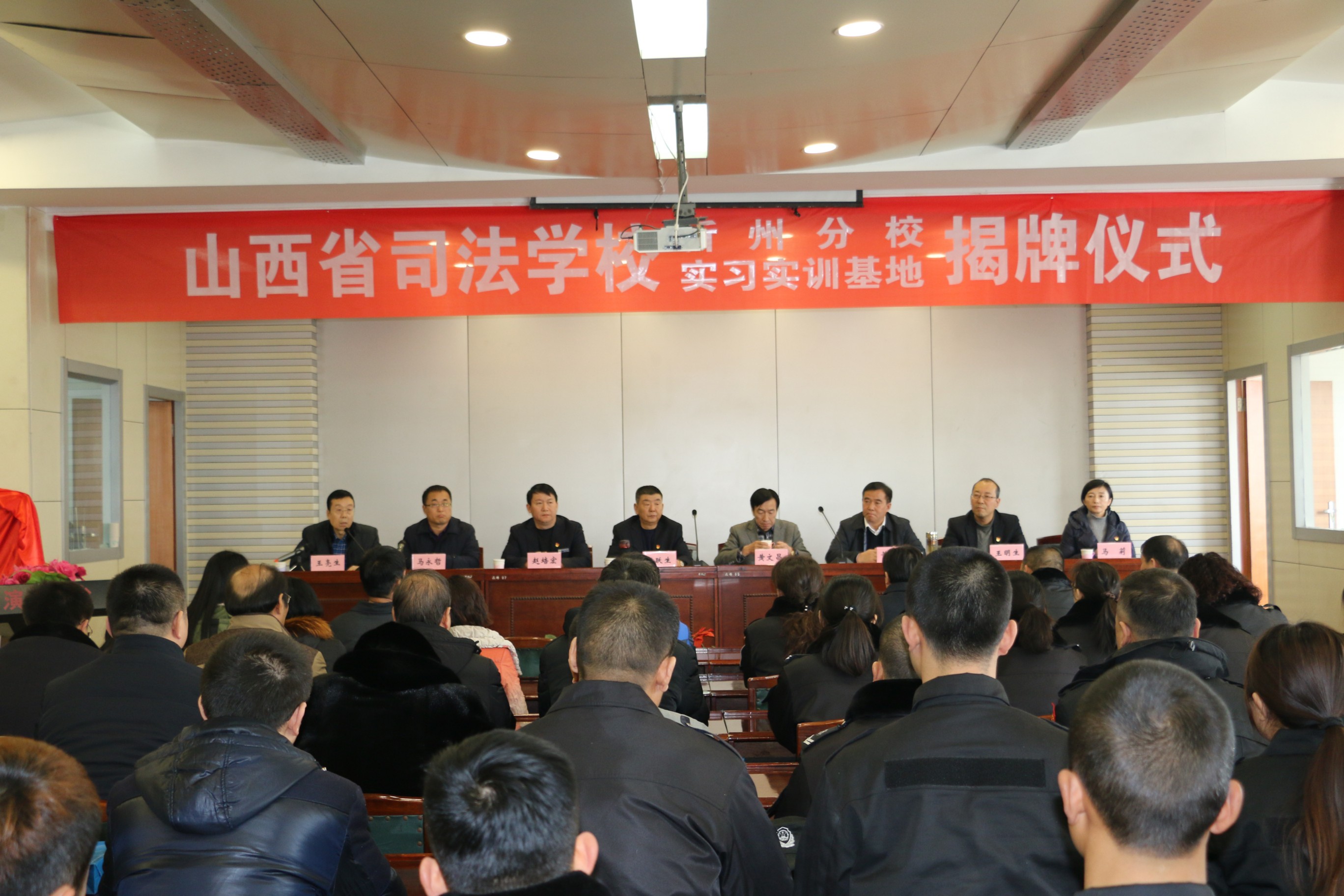 山西省司法學(xué)校忻州分校于2018年1月8日在我公司實訓(xùn)基地掛牌。公司總經(jīng)理張躍生、副總經(jīng)理趙培宏、王明生、總經(jīng)理助理羅鵬生、蔡車峰、高秀生、宋林兔等領(lǐng)導(dǎo)參加了掛牌儀式。
