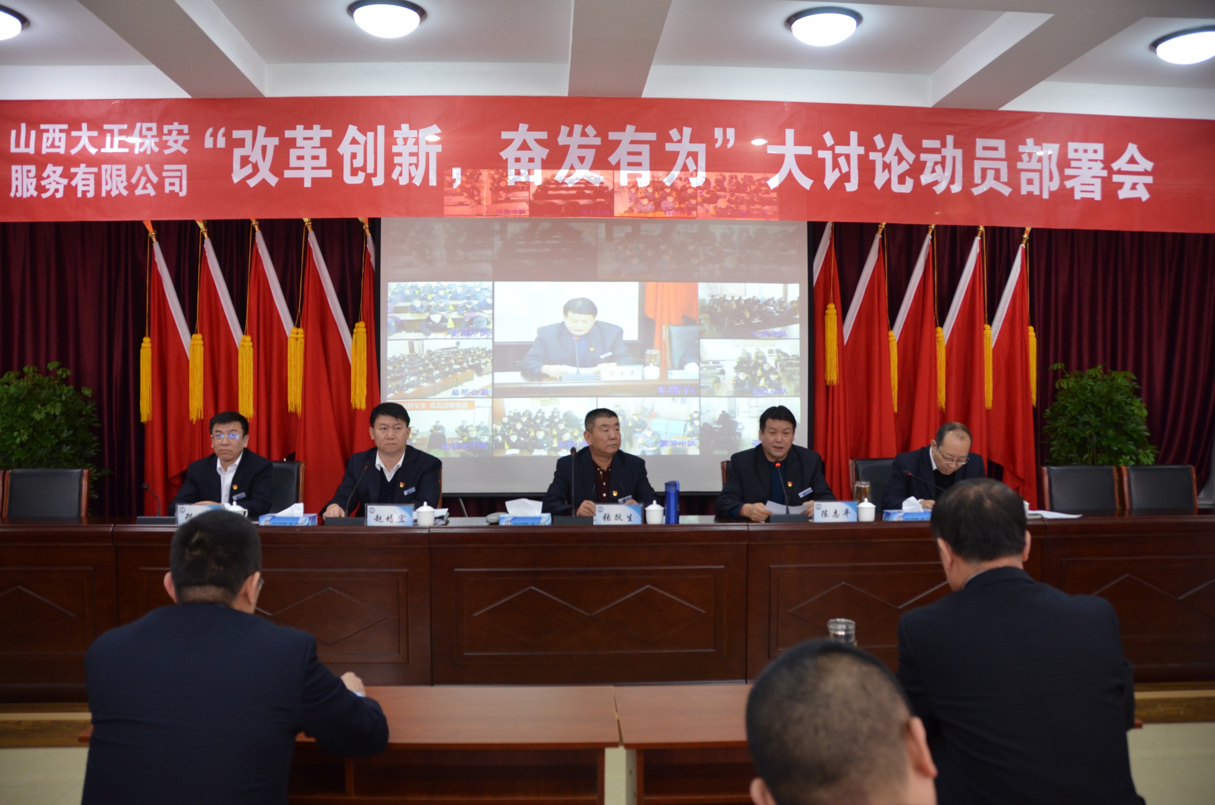 近日,山西大正保安服務(wù)有限公司召開(kāi)“改革創(chuàng)新、奮發(fā)有為”大討論動(dòng)員部署會(huì),會(huì)議以視頻的形式召開(kāi)至基層各單位。公司黨政領(lǐng)導(dǎo)班子、機(jī)關(guān)各中心(室)、基層各單位全體員工參加會(huì)議。黨委副書(shū)記、副總經(jīng)理陳志平主持會(huì)議。