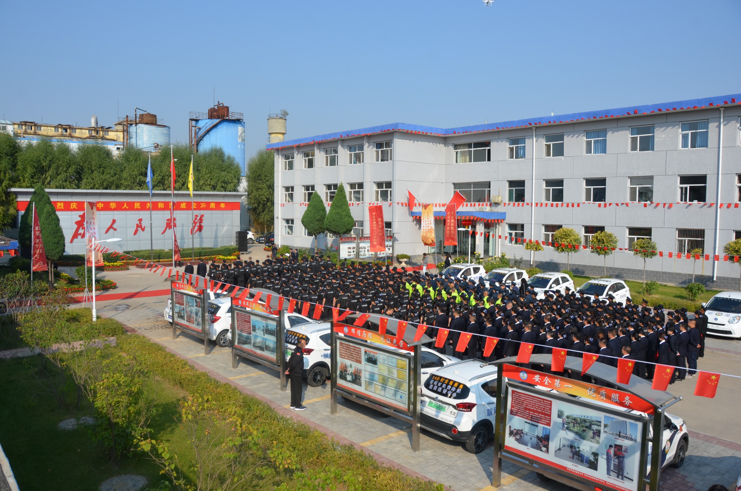 在中華人民共和國(guó)成立70周年即將來(lái)臨之際,為進(jìn)一步提高廣大干部職工的愛(ài)國(guó)意識(shí),營(yíng)造濃厚的愛(ài)國(guó)愛(ài)企氛圍,激發(fā)正能量、提升凝聚力。9月27日,山西大正保安服務(wù)有限公司在公司城南駐地隆重舉行莊嚴(yán)的升旗儀式。黨委書(shū)記、董事長(zhǎng)張躍生作重要講話(huà),公司黨委委員、副總經(jīng)理趙培宏主持升旗儀式。王明生、邢春生、張瑞東、呂雙明等公司領(lǐng)導(dǎo)、機(jī)關(guān)各單位及基層九個(gè)分公司的400余名干部職工參加儀式。