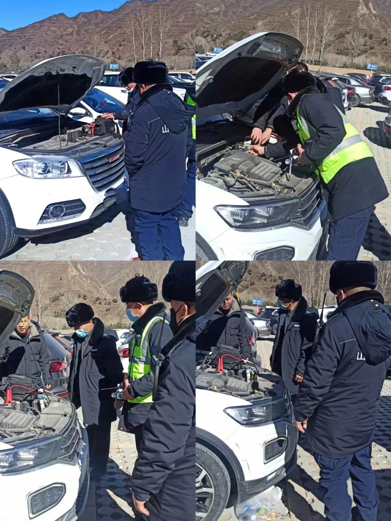 在這樣一個人流密集的地方執(zhí)勤,意味著要時刻保持高度的警覺和熱情的服務(wù)。執(zhí)勤期間,隊(duì)員在巡視停車場時,發(fā)現(xiàn)了一輛私家車主焦急地圍著自己的車輛打轉(zhuǎn)。原來,這輛車因長時間停放導(dǎo)致電瓶虧電,無法啟動。執(zhí)勤隊(duì)員立即上前詢問情況,并利用隨車攜帶的跳線,幫助游客成功搭電點(diǎn)火,解決了游客的燃眉之急