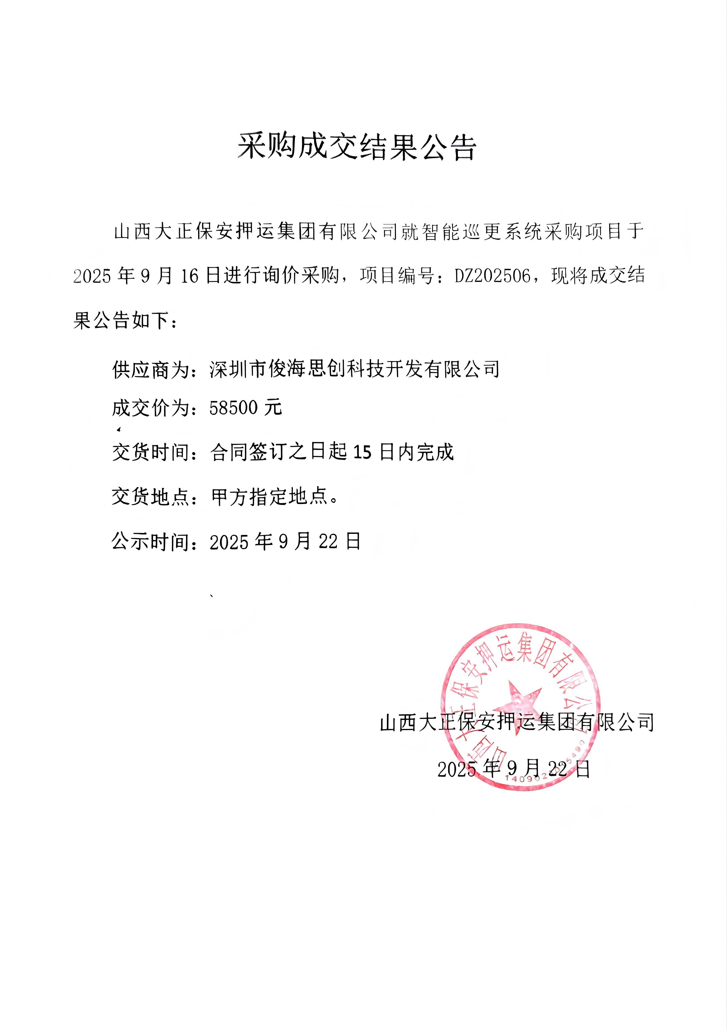 成交結(jié)果公示