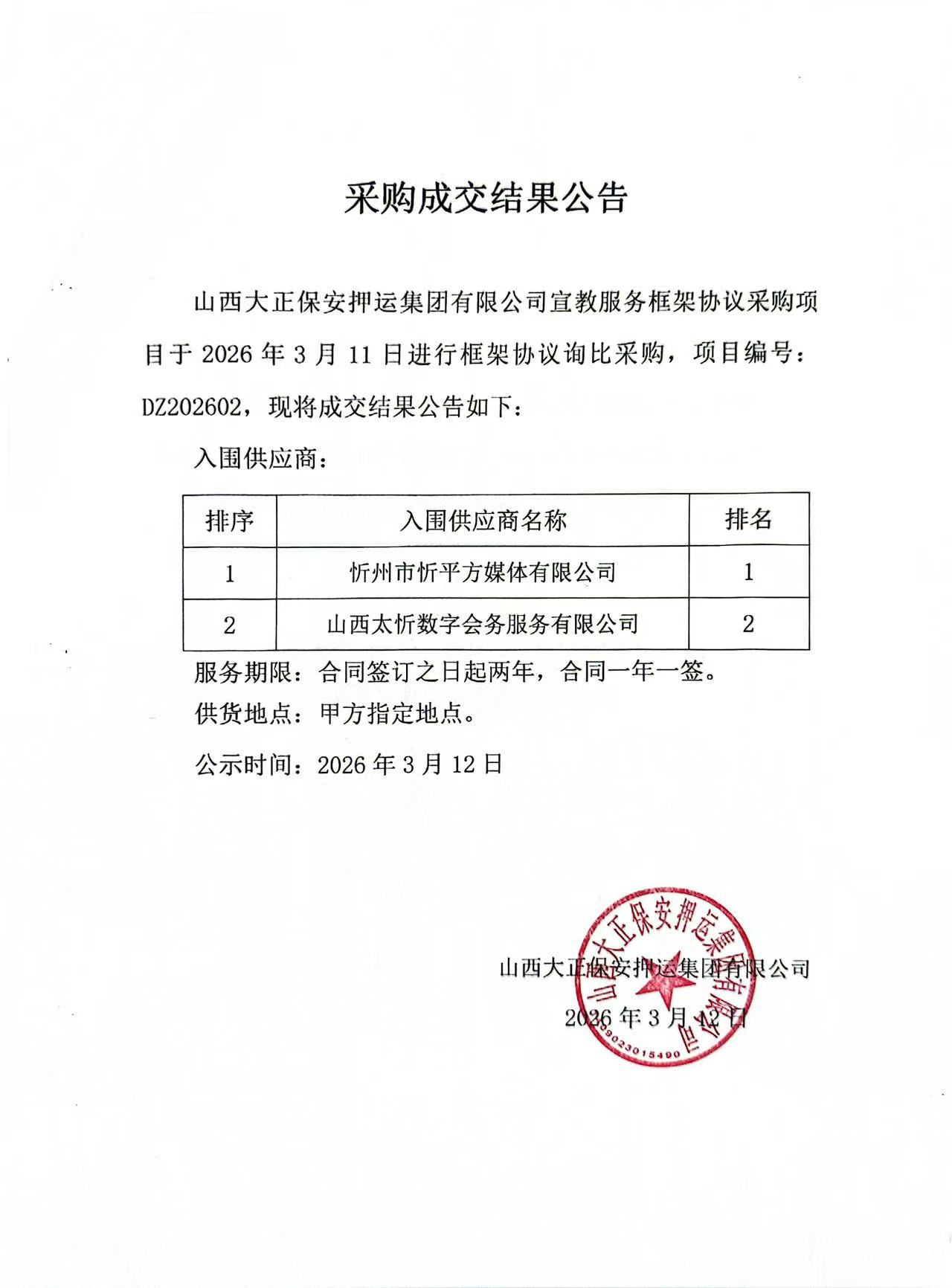 成交結(jié)果公示