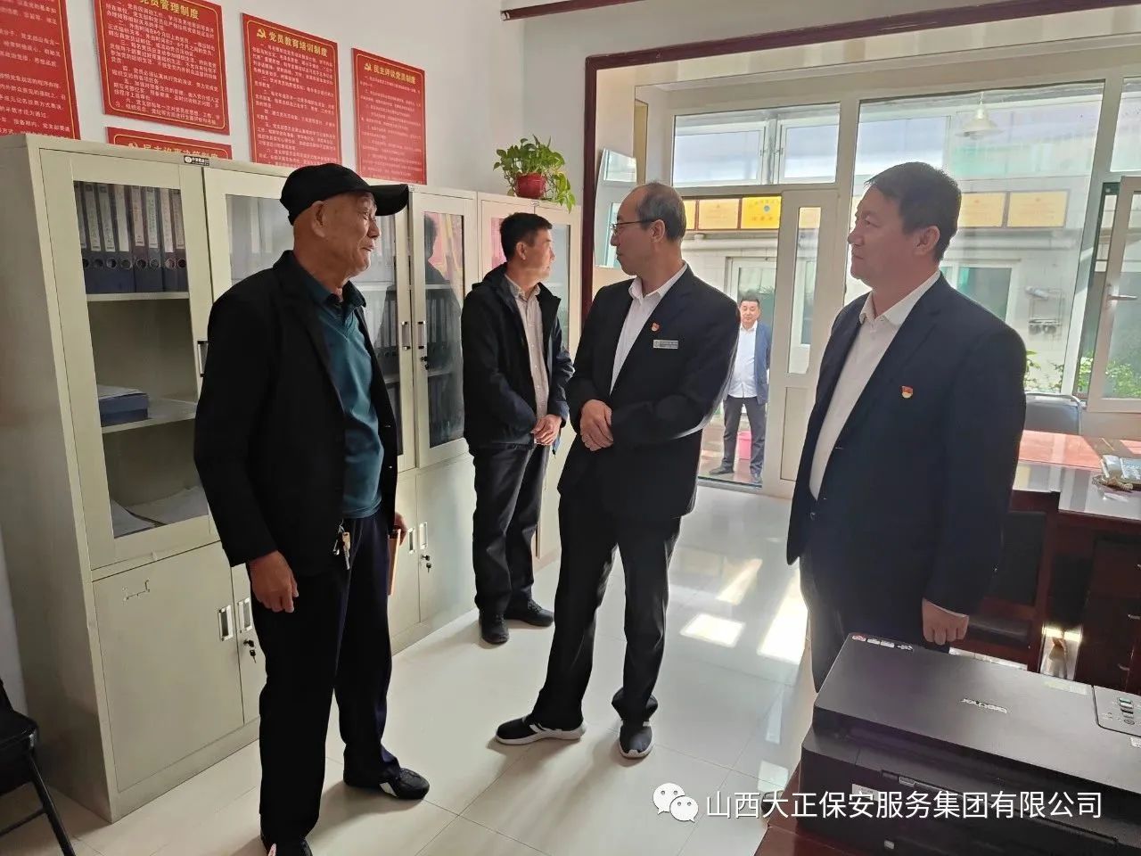10月12日,趙培宏繼續(xù)前往繁峙縣保安服務(wù)公司開展調(diào)研活動,集團(tuán)公司董事長辦公室主任宋林兔及保安公司、辦公室相關(guān)同志陪同。