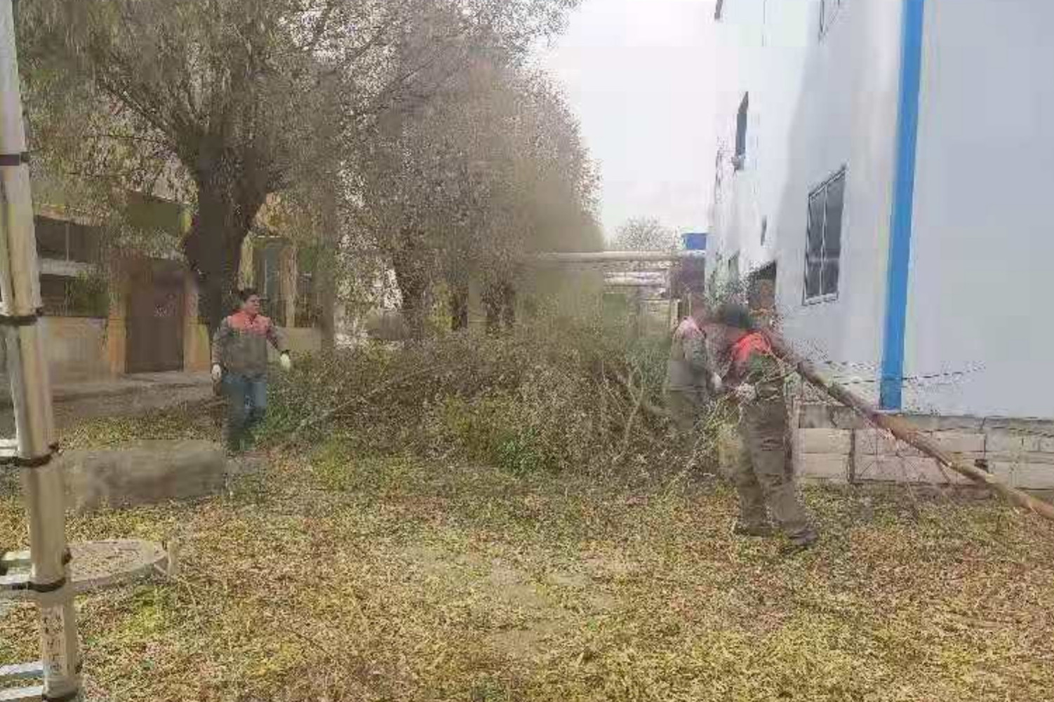 有的同志在樹上使用工具修剪樹枝,有的則在地面撿拾枝葉,還有的用掃把清掃環(huán)境衛(wèi)生,全體參與人員分工協(xié)作,經(jīng)過連續(xù)兩天的緊張工作,院內(nèi)的樹枝全部修剪完畢,辛勤的勞動(dòng)換來了衛(wèi)生的整潔,保持了集團(tuán)總部辦公新址院內(nèi)的環(huán)境美觀。